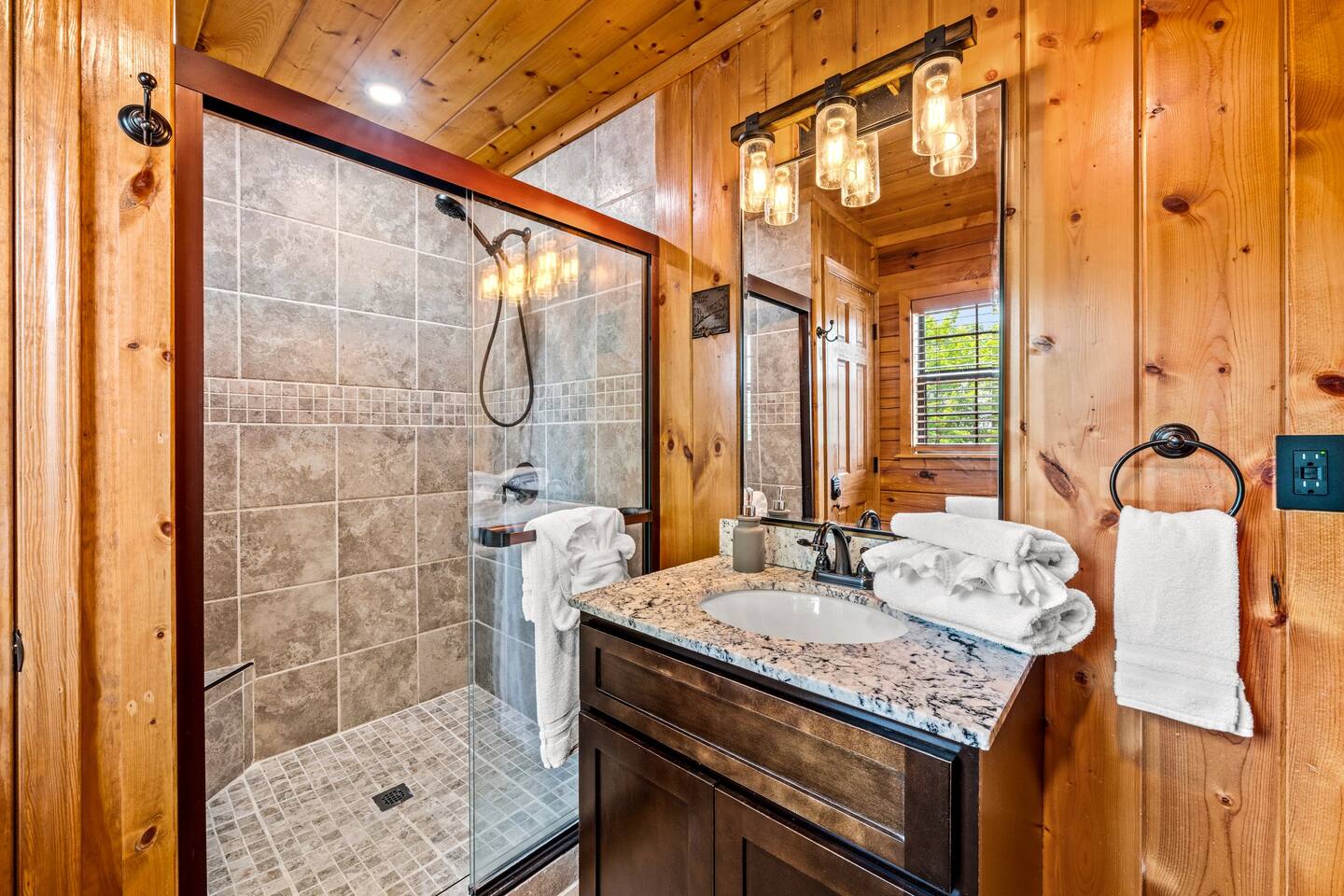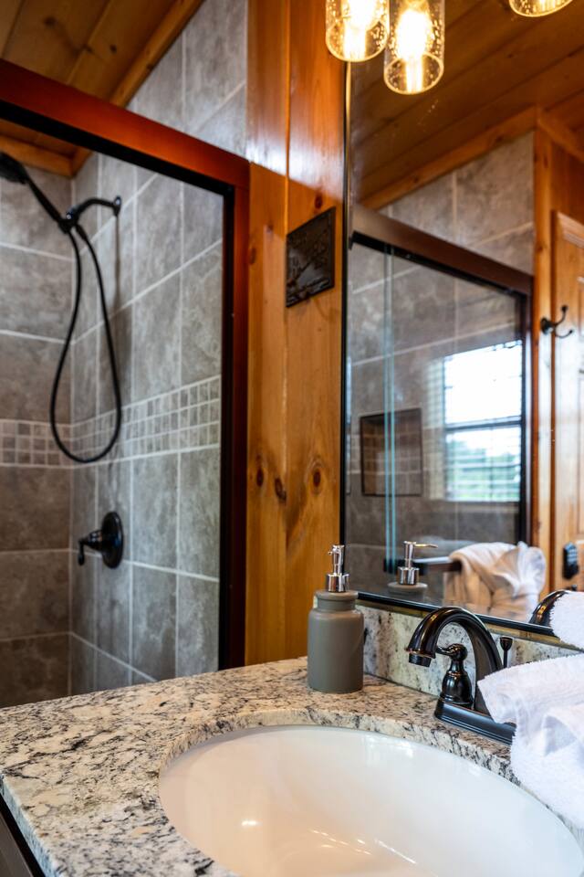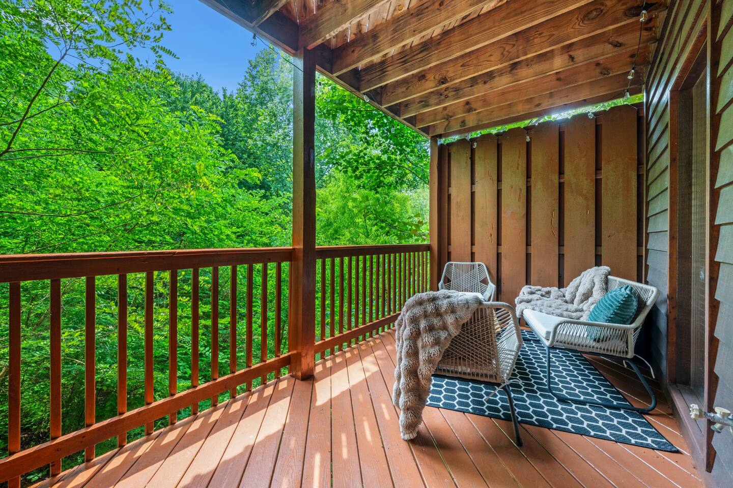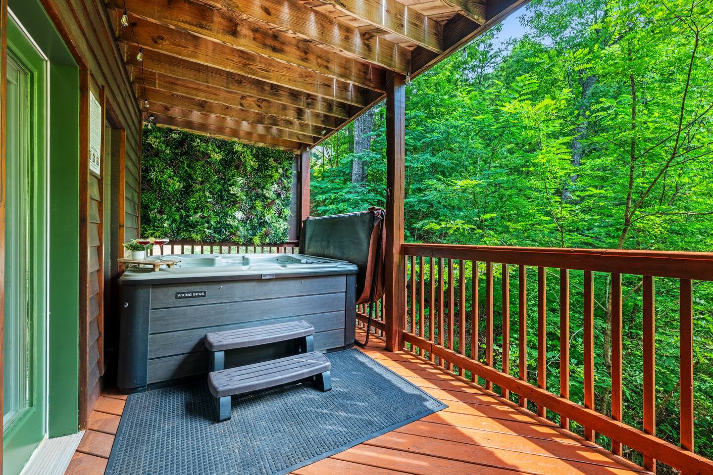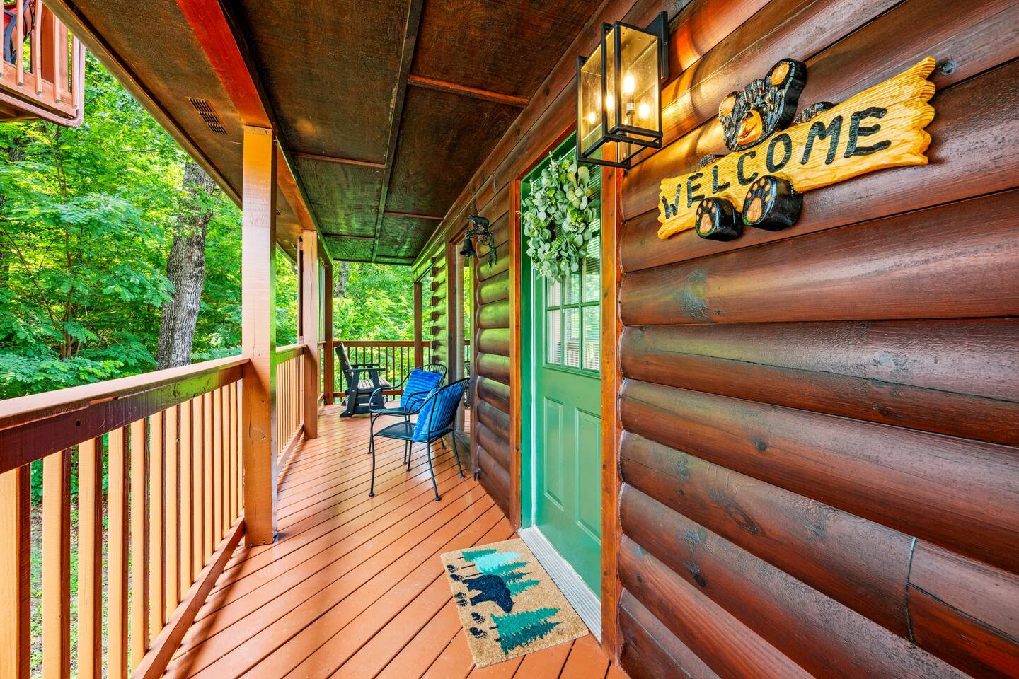 Black Bear Retreat welcomes you to your mountain escape! Enjoy easy access to Dollywood and Splash Country & all that Pigeon Forge and the surrounding area has to offer! Your cabin is located in Hidden Springs Resort, a quiet resort setting with all of these attractions so close that you can hear the Dollywood train whistle from the decks! OVERVIEW In your 2 bedroom 2 bath cabin, the upper level boasts a well equipped kitchen where you can enjoy a meal with family and friends at the dining table or outside on the upper level deck overlooking the serene woods. On the lower level, you'll enjoy a private hot tub, outdoor lounge area, game room with pool table, foosball, arcade table for 1-2 players and bunk beds. MODERN AMENITIES ★Coffee & Tea Bar: Start your morning right at your coffee and tea bar! Keurig, French Press, hot water kettle, K cups, a variety of teas, flavor syrups, creamer, and sweetener are available for your use. ★Roku Smart TVs located in each bedroom and in both living areas, allowing you to stream from all platforms. Guest mode is enabled on the TVs, so enjoy streaming with the peace of mind that you'll be automatically logged out of your accounts upon checkout. ★Outlets with USB & USB-C plugs: Don't stress about finding a plug in! Each bedside table is equipped with lamps that have a standard plug, USB, and USB-C plug. Additionally, you'll be happy to find USB and USB-C plugs at several conveniently located outlets throughout the cabin! ★High speed WiFi available CABIN LAYOUT MAIN FLOOR ★Open floorplan kitchen, dining, living areas with coffee and tea bar and queen size sleeper sofa. ★Coffee & tea bar where you can make your perfect cup! ★65" Roku Smart TV in the inviting living area. ★Gorgeous floor to ceiling windows and stacked stone gas fireplace (available November through March). ★King bedroom with Roku Smart TV adjacent to main level full bathroom with walk in shower. ★Large dining table for enjoying meals indoor. ★Access to a spacious deck overlooking a serene wooded area: - Outdoor dining space for up to 8 - Rocking chairs - Bear themed glider LOWER LEVEL ★Second living space with 55" Roku Smart TV and a large coffee table perfect for family game night! ★Lower deck with private hot tub and outdoor seating area. ★Game room with: - Pool table - Arcade table for 1-2 players - Foosball table - A select variety of board games - Bar height table for hanging out ★King bedroom and Roku Smart TV adjacent to second bathroom. ★Bathroom with shower/tub combo. ★Twin size bunk beds and queen pullout sofa. ★Washer and dryer with iron. LOCATION - <1.5 miles to Dollywood - 4 miles to The Ripken Experience - 4 miles to Pigeon Forge - 6.5 miles to Tanger Outlets Sevierville - 10 miles to Gatlinburg - 14 miles to Great Smoky Mountains NP Gatlinburg Entrance - 14 miles to Great Smoky Mountains NP Greenbrier Entrance - 15 miles to Douglas Lake