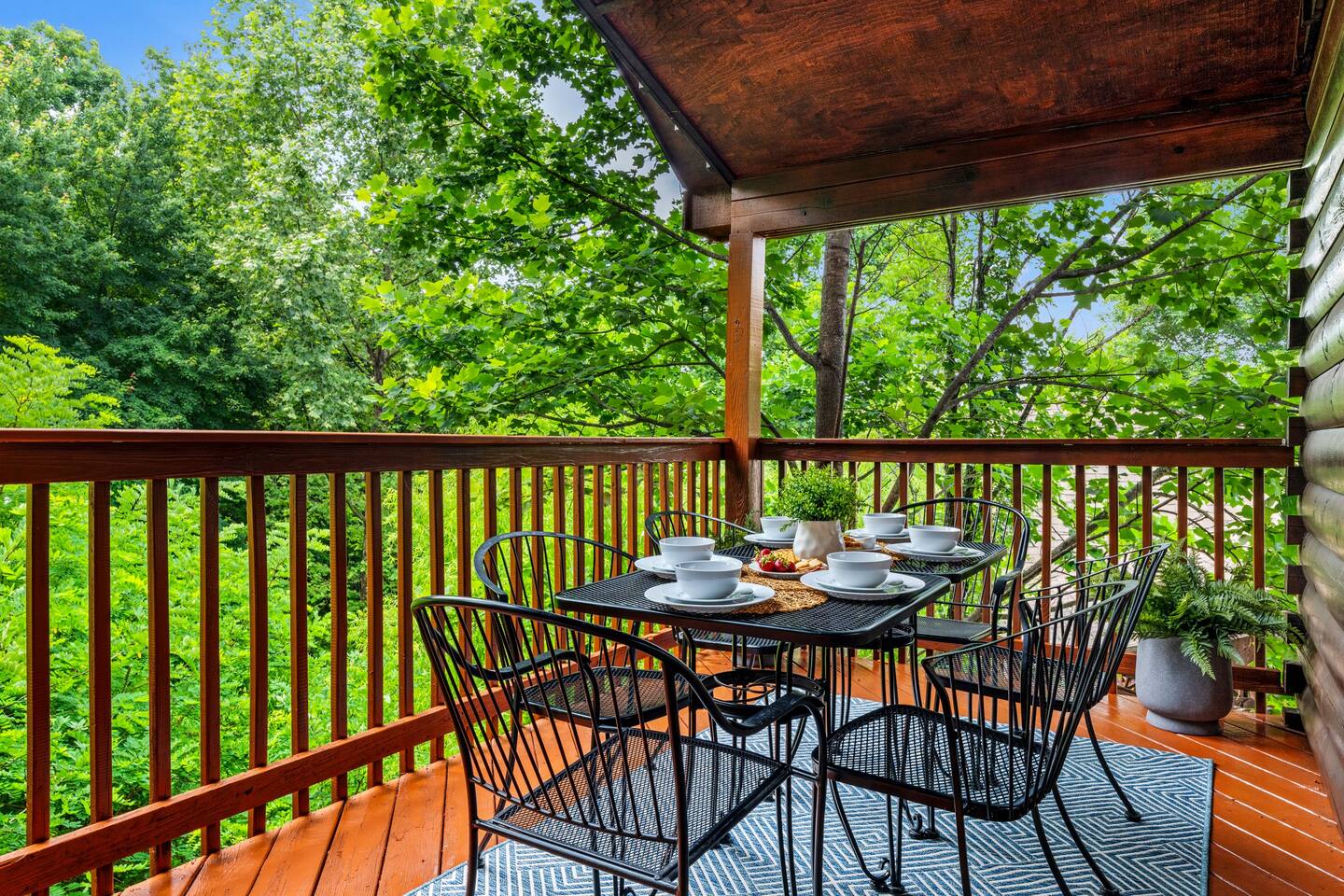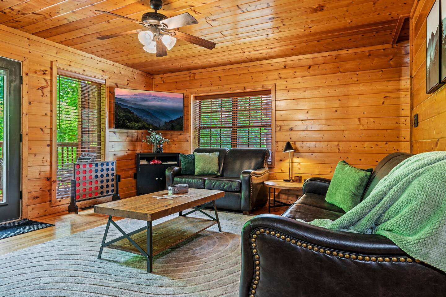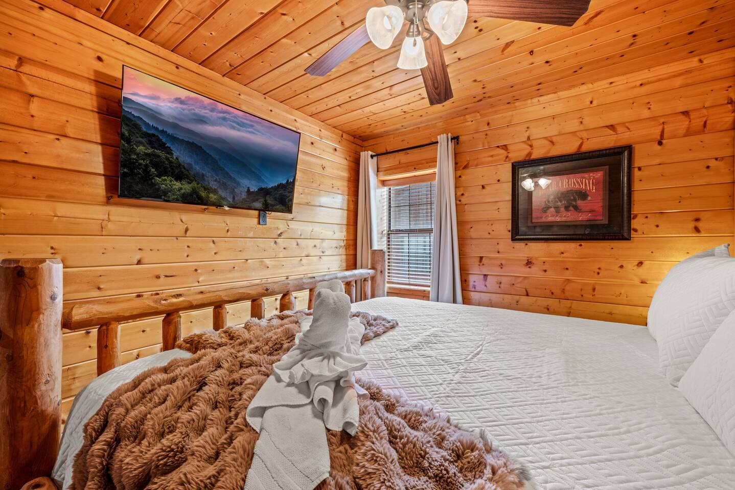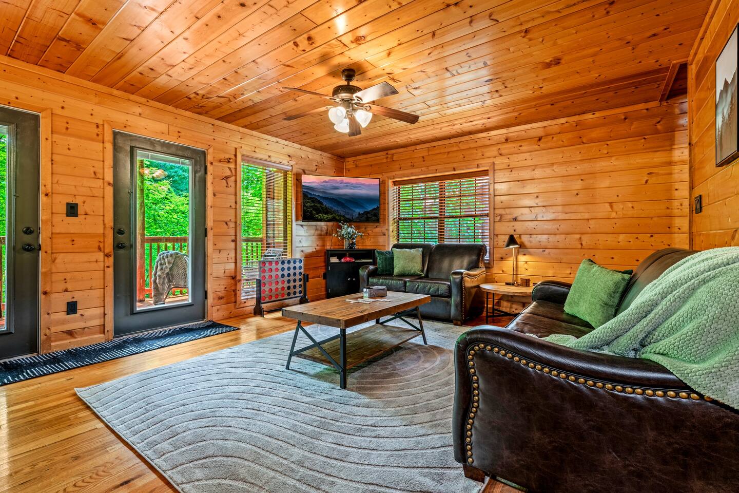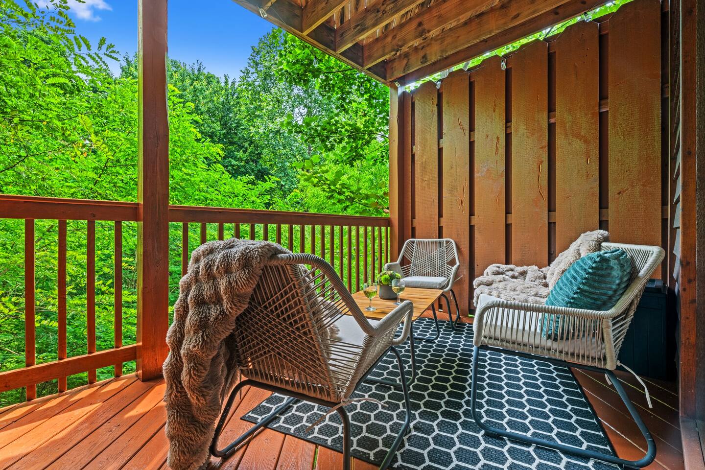 Black Bear Retreat welcomes you to your mountain escape! Enjoy easy access to Dollywood and Splash Country & all that Pigeon Forge and the surrounding area has to offer! Your cabin is located in Hidden Springs Resort, a quiet resort setting with all of these attractions so close that you can hear the Dollywood train whistle from the decks! OVERVIEW In your 2 bedroom 2 bath cabin, the upper level boasts a well equipped kitchen where you can enjoy a meal with family and friends at the dining table or outside on the upper level deck overlooking the serene woods. On the lower level, you'll enjoy a private hot tub, outdoor lounge area, game room with pool table, foosball, arcade table for 1-2 players and bunk beds. MODERN AMENITIES ★Coffee & Tea Bar: Start your morning right at your coffee and tea bar! Keurig, French Press, hot water kettle, K cups, a variety of teas, flavor syrups, creamer, and sweetener are available for your use. ★Roku Smart TVs located in each bedroom and in both living areas, allowing you to stream from all platforms. Guest mode is enabled on the TVs, so enjoy streaming with the peace of mind that you'll be automatically logged out of your accounts upon checkout. ★Outlets with USB & USB-C plugs: Don't stress about finding a plug in! Each bedside table is equipped with lamps that have a standard plug, USB, and USB-C plug. Additionally, you'll be happy to find USB and USB-C plugs at several conveniently located outlets throughout the cabin! ★High speed WiFi available CABIN LAYOUT MAIN FLOOR ★Open floorplan kitchen, dining, living areas with coffee and tea bar and queen size sleeper sofa. ★Coffee & tea bar where you can make your perfect cup! ★65" Roku Smart TV in the inviting living area. ★Gorgeous floor to ceiling windows and stacked stone gas fireplace (available November through March). ★King bedroom with Roku Smart TV adjacent to main level full bathroom with walk in shower. ★Large dining table for enjoying meals indoor. ★Access to a spacious deck overlooking a serene wooded area: - Outdoor dining space for up to 8 - Rocking chairs - Bear themed glider LOWER LEVEL ★Second living space with 55" Roku Smart TV and a large coffee table perfect for family game night! ★Lower deck with private hot tub and outdoor seating area. ★Game room with: - Pool table - Arcade table for 1-2 players - Foosball table - A select variety of board games - Bar height table for hanging out ★King bedroom and Roku Smart TV adjacent to second bathroom. ★Bathroom with shower/tub combo. ★Twin size bunk beds and queen pullout sofa. ★Washer and dryer with iron. LOCATION - <1.5 miles to Dollywood - 4 miles to The Ripken Experience - 4 miles to Pigeon Forge - 6.5 miles to Tanger Outlets Sevierville - 10 miles to Gatlinburg - 14 miles to Great Smoky Mountains NP Gatlinburg Entrance - 14 miles to Great Smoky Mountains NP Greenbrier Entrance - 15 miles to Douglas Lake