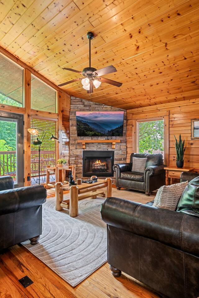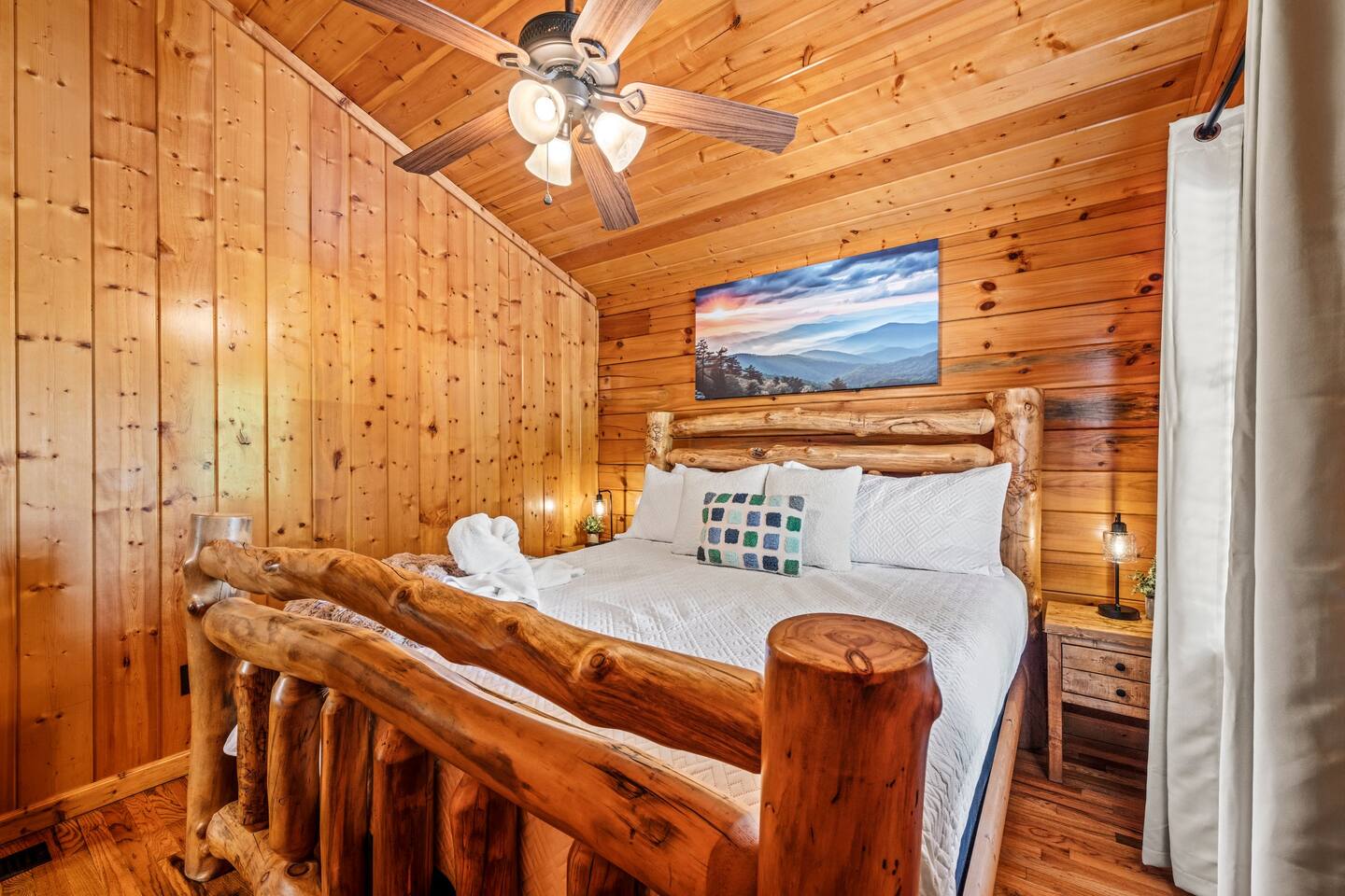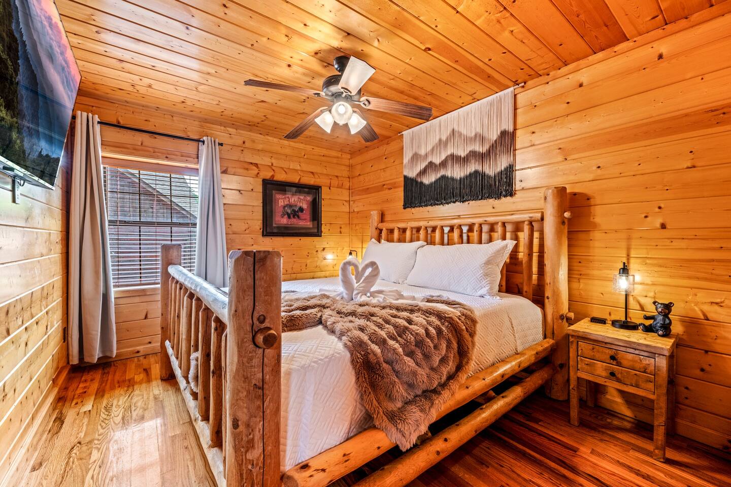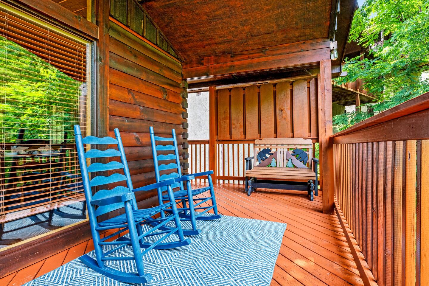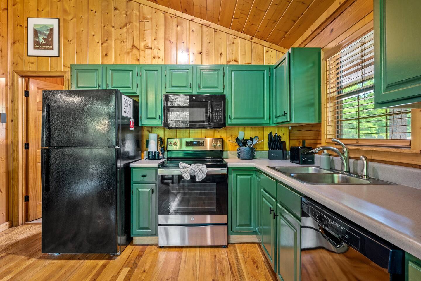 Black Bear Retreat welcomes you to your mountain escape! Enjoy easy access to Dollywood and Splash Country & all that Pigeon Forge and the surrounding area has to offer! Your cabin is located in Hidden Springs Resort, a quiet resort setting with all of these attractions so close that you can hear the Dollywood train whistle from the decks! OVERVIEW In your 2 bedroom 2 bath cabin, the upper level boasts a well equipped kitchen where you can enjoy a meal with family and friends at the dining table or outside on the upper level deck overlooking the serene woods. On the lower level, you'll enjoy a private hot tub, outdoor lounge area, game room with pool table, foosball, arcade table for 1-2 players and bunk beds. MODERN AMENITIES ★Coffee & Tea Bar: Start your morning right at your coffee and tea bar! Keurig, French Press, hot water kettle, K cups, a variety of teas, flavor syrups, creamer, and sweetener are available for your use. ★Roku Smart TVs located in each bedroom and in both living areas, allowing you to stream from all platforms. Guest mode is enabled on the TVs, so enjoy streaming with the peace of mind that you'll be automatically logged out of your accounts upon checkout. ★Outlets with USB & USB-C plugs: Don't stress about finding a plug in! Each bedside table is equipped with lamps that have a standard plug, USB, and USB-C plug. Additionally, you'll be happy to find USB and USB-C plugs at several conveniently located outlets throughout the cabin! ★High speed WiFi available CABIN LAYOUT MAIN FLOOR ★Open floorplan kitchen, dining, living areas with coffee and tea bar and queen size sleeper sofa. ★Coffee & tea bar where you can make your perfect cup! ★65" Roku Smart TV in the inviting living area. ★Gorgeous floor to ceiling windows and stacked stone gas fireplace (available November through March). ★King bedroom with Roku Smart TV adjacent to main level full bathroom with walk in shower. ★Large dining table for enjoying meals indoor. ★Access to a spacious deck overlooking a serene wooded area: - Outdoor dining space for up to 8 - Rocking chairs - Bear themed glider LOWER LEVEL ★Second living space with 55" Roku Smart TV and a large coffee table perfect for family game night! ★Lower deck with private hot tub and outdoor seating area. ★Game room with: - Pool table - Arcade table for 1-2 players - Foosball table - A select variety of board games - Bar height table for hanging out ★King bedroom and Roku Smart TV adjacent to second bathroom. ★Bathroom with shower/tub combo. ★Twin size bunk beds and queen pullout sofa. ★Washer and dryer with iron. LOCATION - <1.5 miles to Dollywood - 4 miles to The Ripken Experience - 4 miles to Pigeon Forge - 6.5 miles to Tanger Outlets Sevierville - 10 miles to Gatlinburg - 14 miles to Great Smoky Mountains NP Gatlinburg Entrance - 14 miles to Great Smoky Mountains NP Greenbrier Entrance - 15 miles to Douglas Lake