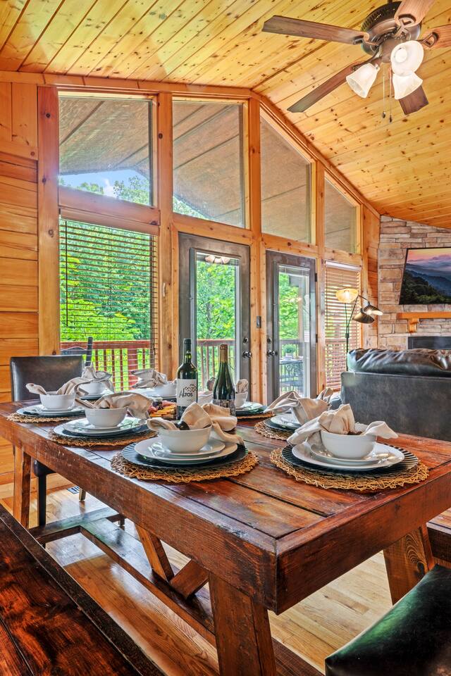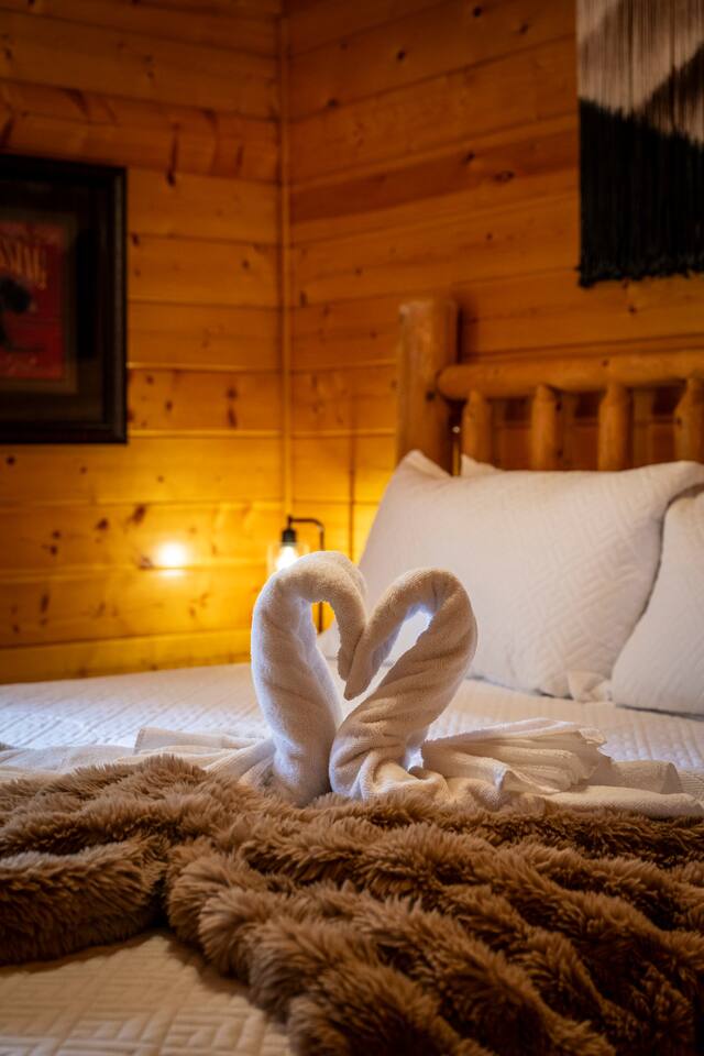 - 8 Person Max. If you bring more people than accounted for on your reservation, you will be charged $250 per person over 8. - QUIET HOURS between 10:00pm - 8:00am - No Pets. Animals are not allowed in the cabin. You will be charged $500 if you bring a pet. - We provide a starter set of supplies for your stay. Please note this may not be enough for the entirety of your stay, and you may need to buy more. - The cabin is in the woods. Pest control is performed on a regular basis, but you will likely see and hear critters. If you see a bear (or other wildlife), during your stay DO NOT FEED IT. Stay away from it. They are dangerous. - Bring all food inside the cabin. Bears can smell food and will break into your car to get it! - No late check-out or early check-in unless arranged with host prior. If a guest does not vacate the property by 10AM on their scheduled day of departure, the fee for failing to vacate is $50.00 dollars for the first half hour and $100.00 for each subsequent half hour. Please contact us if there are extenuating circumstances! - In the event that you would like to check in early, please reach out to us. Early Check-In is $200 pending availability and can only be confirmed 24 hours in advance. We will do what we can to make this possible for you. - No fires or open flames including candles. (Except in the gas fireplace) The use of a candle or flame will result in a $250 fine. - Smoking of any kind is not allowed. - There are 3 exterior security cameras installed for the safety of both the guest and the property. ONE camera is facing the parking area. ONE camera is facing the entry steps. ONE camera is underneath the lower deck at the crawlspace. Any tampering with cameras, including, but not limited to, covering and otherwise disabling, is grounds to early termination of reservation without refund. - Use the hot tub AT YOUR OWN RISK. It is not recommended if you are pregnant, have medical conditions impacted by high temperatures, or are under the influence of alcohol. - The hot tub is completely emptied and cleaned for every stay. Therefore, it is possible that the hot tub may not be at the desired temperature immediately upon check-in. - No refunds for weather/natural disasters/power outages/acts of god/other things that are beyond our control. Be advised that refunds will not be provided in cases of illness or travel disruptions. We strongly recommend travel insurance. - Please note: Food is not provided. Guests are encouraged to bring their own groceries, snacks, or ingredients to enjoy. Wine, charcuterie, and any other food items pictured are not included in booking. If you'd prefer a hassle free experience, we're happy to connect you with a local concierge service to assist with custom packages, grocery drop off, and food set up! For more details, please message us before or during your stay! - Minimum booking age is 25.